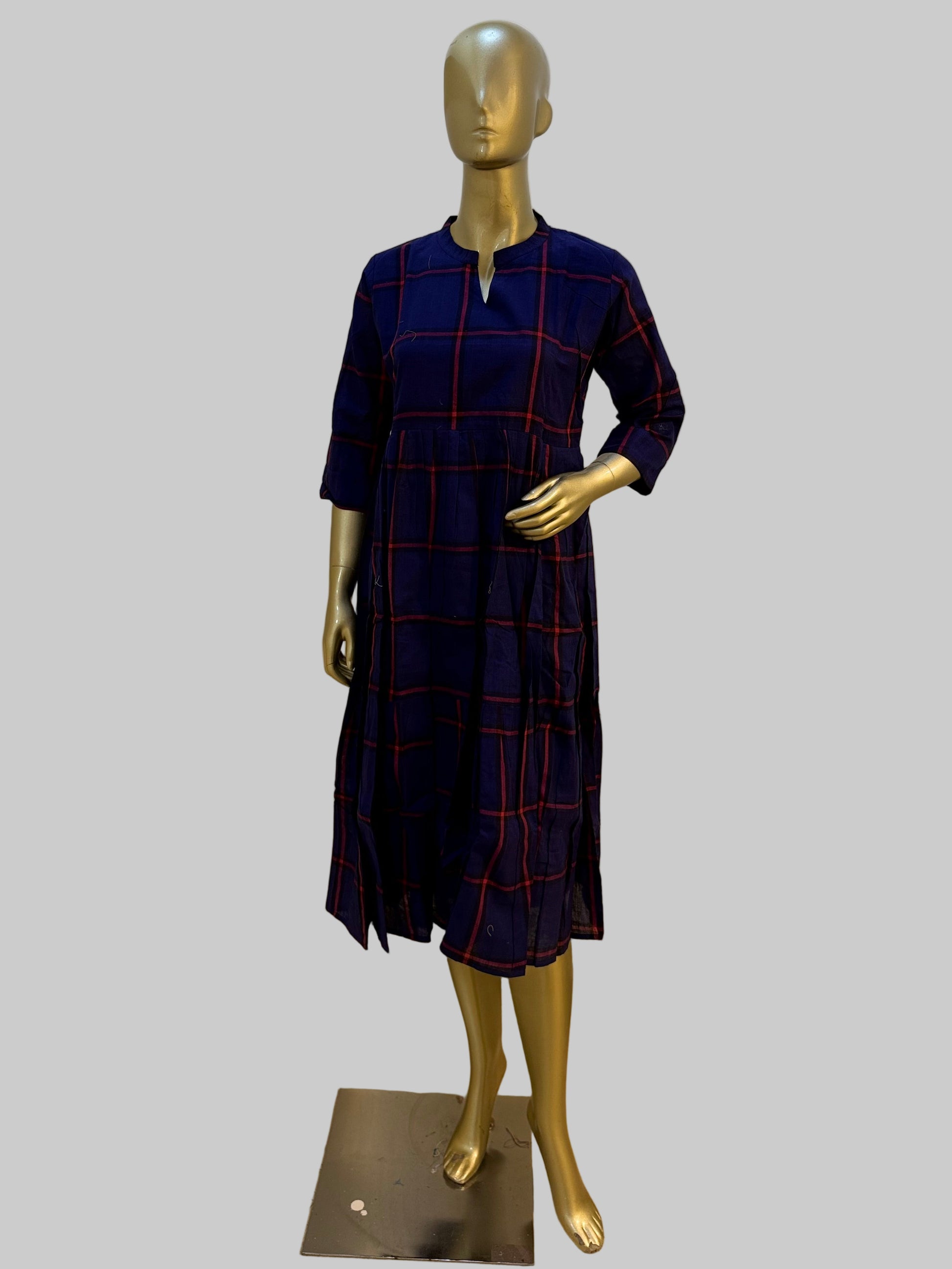 Designed in a delightful shade of purple with woven check patterns, this cotton frock adds a pop of understated charm to your wardrobe. Crafted with breathable cotton fabric, it’s tailored in a flattering straight-cut silhouette that’s ideal for work, casual outings, or weekend relaxation. Available in inclusive sizes from Large to XL.